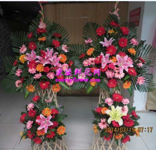 开业花篮一对,1.6米高度双层开业花篮,百合花,太阳花