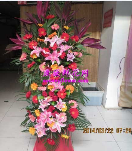 双层开业花篮 百合 太阳花
