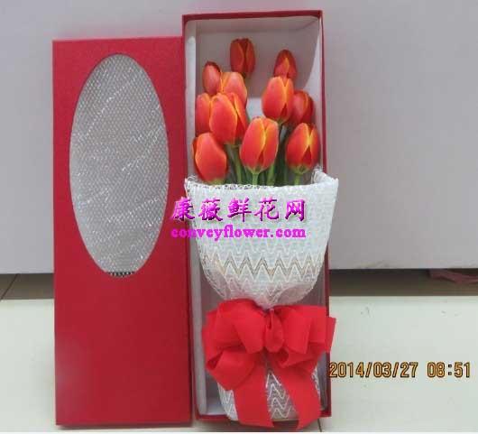 11支红色 郁金香,花盒