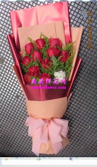 11支红玫瑰,黄莺,红色,扇形包装!鲜花订购
