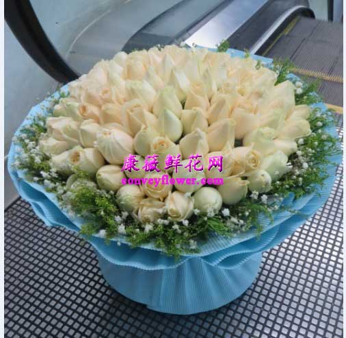 香槟玫瑰99支,满天星,浅蓝色包装,圣诞节送女朋友礼物